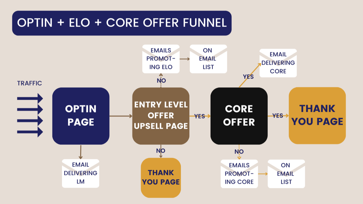 - Emails that automatically send after someone buys your Entry-Level Offer that promotes your Entry-Level Offer
