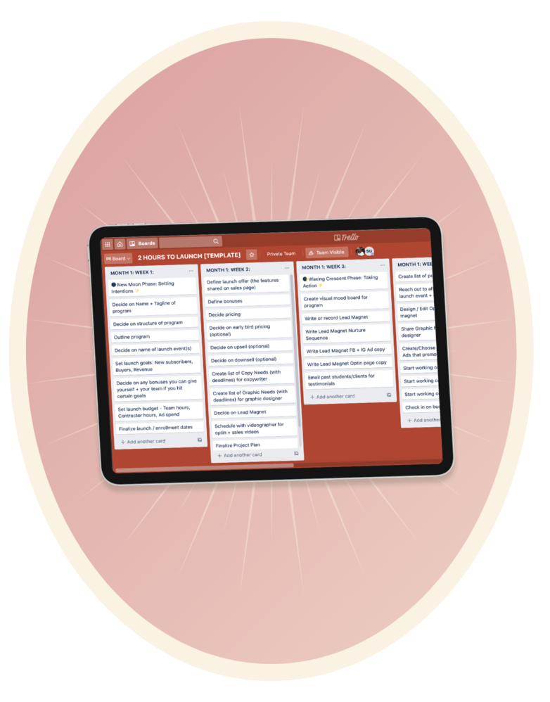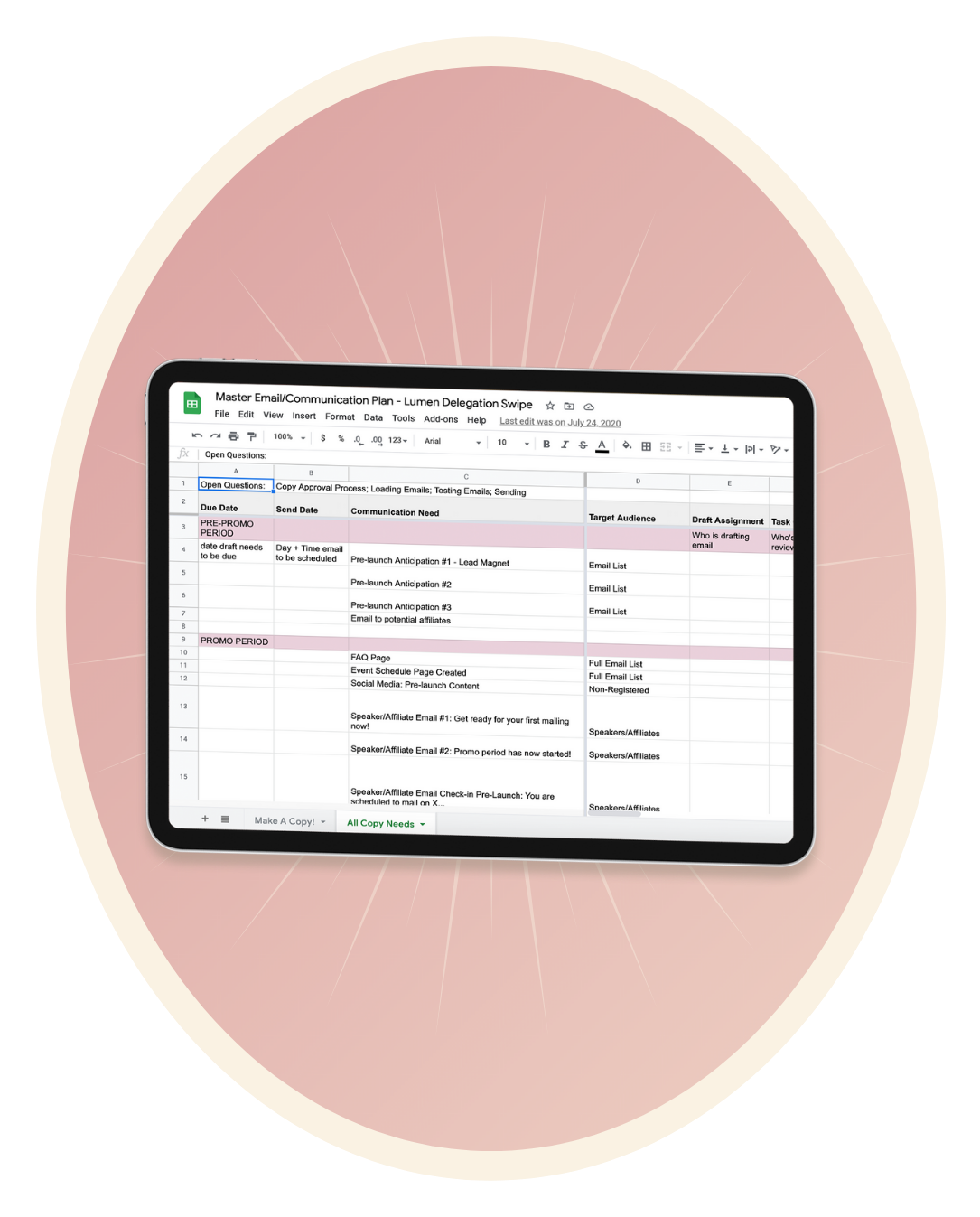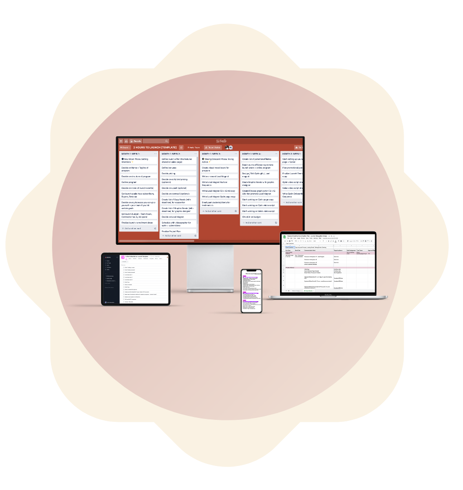 A detailed launch plan that tells you exactly WHAT you need to do and WHEN you need to do it for the 3 month period around the launch.