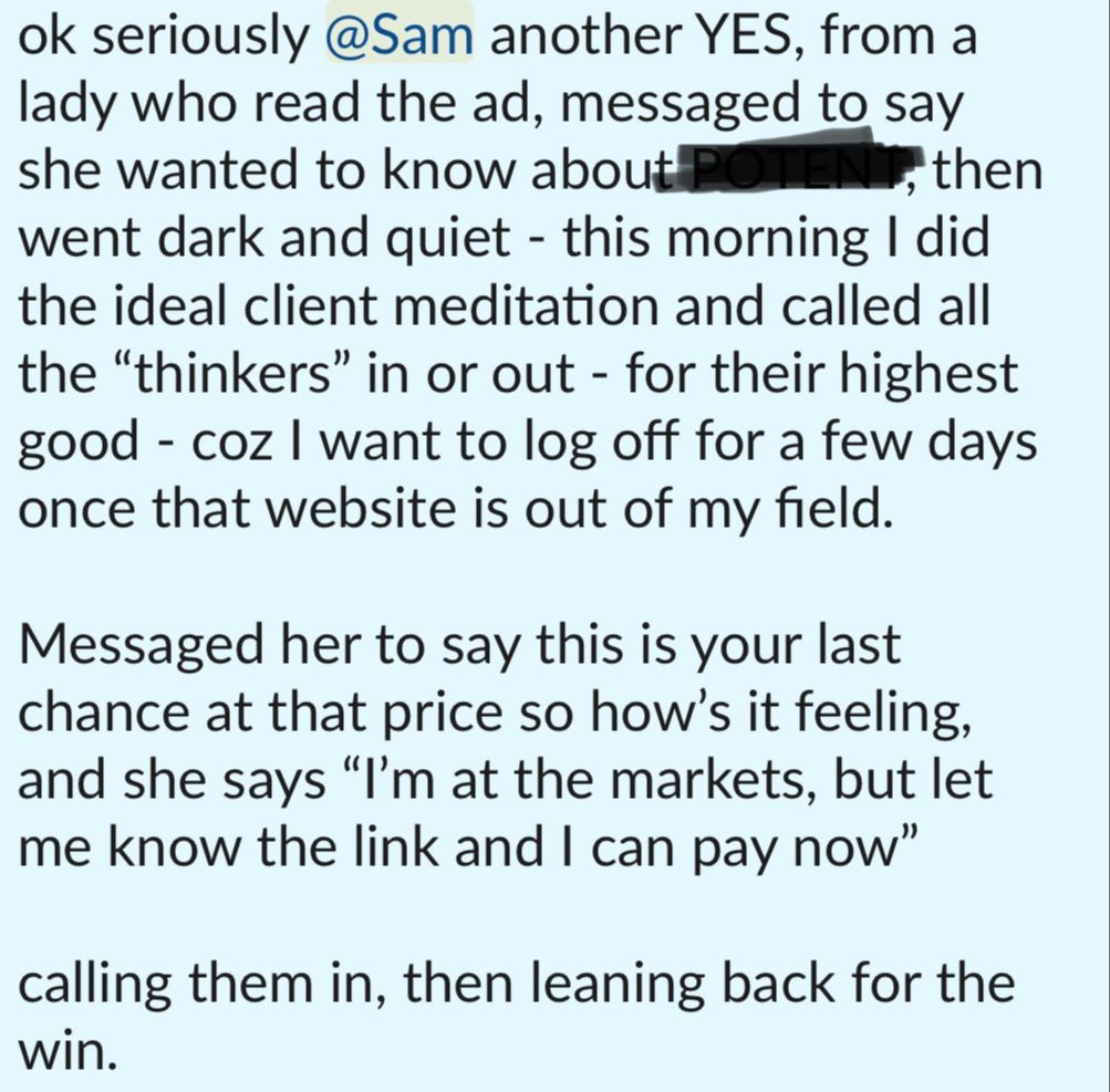 Without the constant pressure to perform online, she’s been able to language her offers in a way that resonates deeper–and it’s opening up new opportunities left and right.